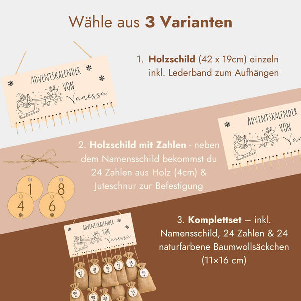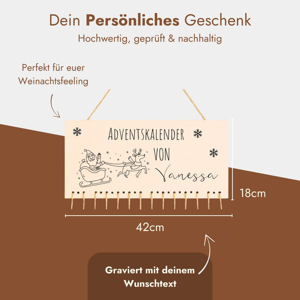 Adventskalender personalisiert - "Weihnachtsschlitten" Gravur