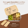 Robuste Bento-Box für den Schulanfang: 740 ml Edelstahl-Dose mit personalisiertem Bambusdeckel. Leicht zu bedienen für kleine Hände, optional mit Trennwänden. Perfekt für Pausenbrot, Obst & Snacks. Umweltfreundlich, langlebig und hygienisch – das persönliche Must-have zum Schulstart.