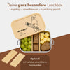 Robuste Bento-Box für den Schulanfang: 740 ml Edelstahl-Dose mit personalisiertem Bambusdeckel. Leicht zu bedienen für kleine Hände, optional mit Trennwänden. Perfekt für Pausenbrot, Obst & Snacks. Umweltfreundlich, langlebig und hygienisch – das persönliche Must-have zum Schulstart.