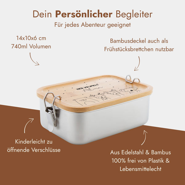 • Kinder Bento Box personalisiert – Edelstahl mit Bambusdeckel