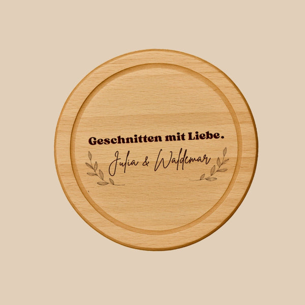 Personalisiertes Schneidebrett aus Buche Rund 25cm - Geschnitten mit Liebe