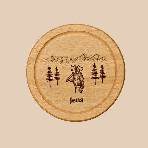 • Servierbrett mit Holzfäller-Motiv – Name/Datum graviert