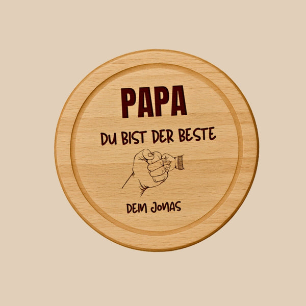 Die edle Gravur mit dem Spruch „Papa, du bist der Beste“ und deinem Wunschnamen macht jedes Brett zu einem individuellen Erinnerungsstück – persönlich, hochwertig und mit Liebe gefertigt.