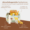15 handliche Figuren – Tiere und Menschen – laden zum Stecken, Sortieren und Nachspielen ein und fördern dabei Motorik, Fantasie und Formenverständnis auf natürliche Weise.