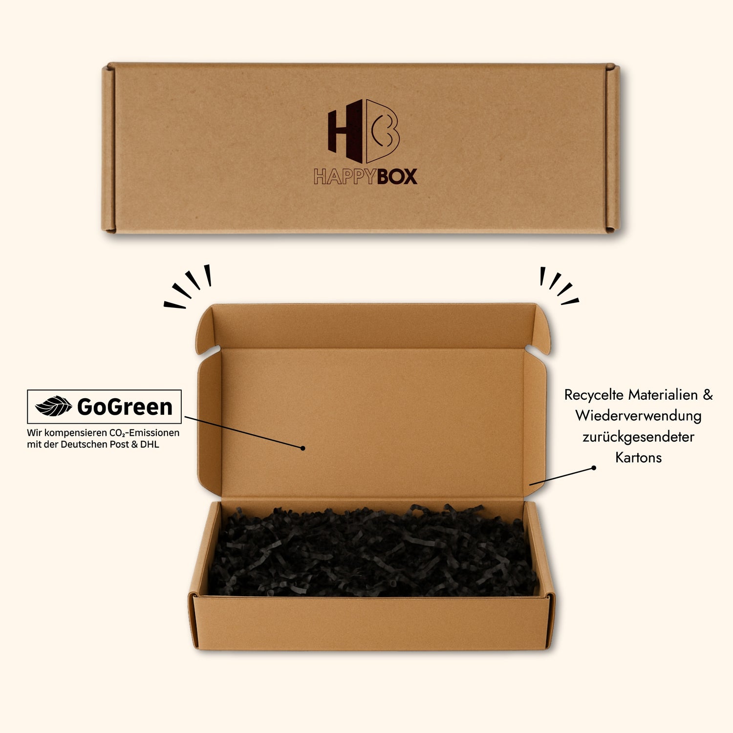 Wir setzen auf praktische und umweltfreundliche Verpackungsmethoden. Plastik kommt bei uns nicht in die Tüte.. äh Box. Wir verschicken zusätzlich CO2-neutral mit DHL GoGreen.